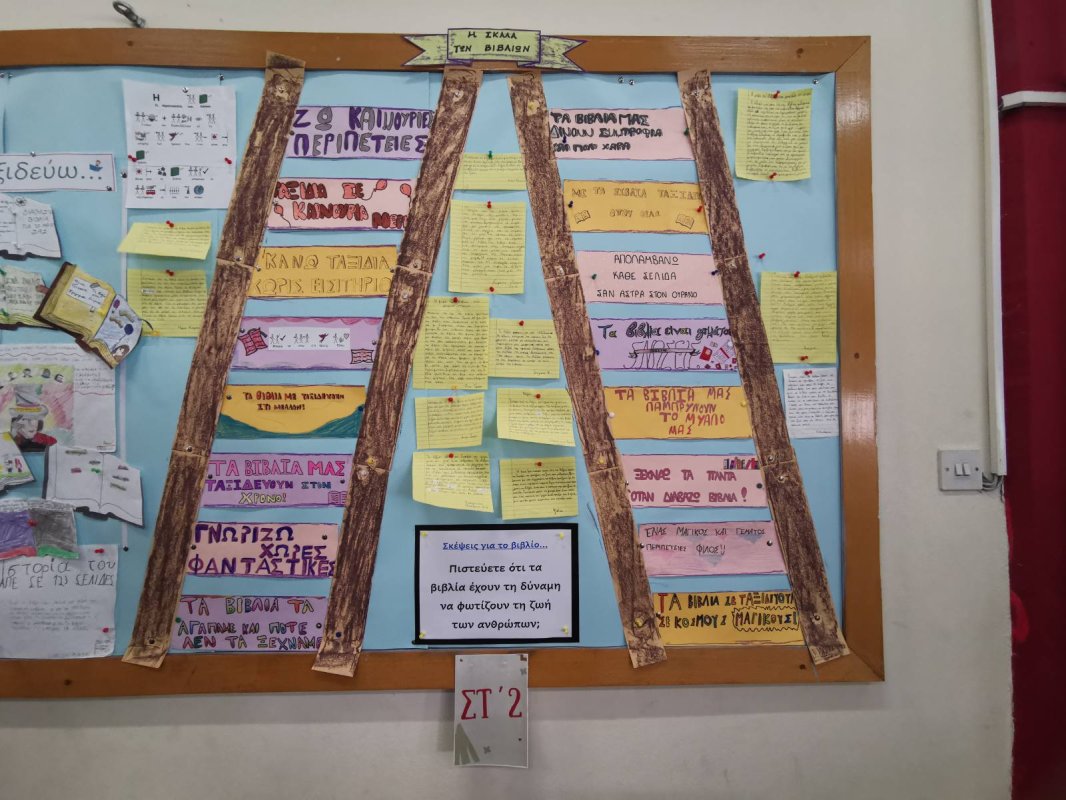 Έκθεση Δραστηριοτήτων Φιλαναγνωσίας, ως επιστέγασμα των δραστηριοτήτων του Δεκαπενθήμερου Φιλαναγνωσίας που προηγήθηκε στο σχολείο επ΄ευκαιρία της Γιορτής των Γραμμάτων (30 Ιανουαρίου). Τα παιδιά όλων των τάξεων είχαν την ευκαιρία να επισκεφτούν την έκθεση και να απολαύσουν ποικιλία εκθεμάτων όπως βιβλιοπαρουσιάσεις, όμορφες κατασκευές, αφίσες, κείμενα και ποιήματα με θέμα το βιβλίο, βιογραφικά αγαπημένων συγγραφέων παιδικής λογοτεχνίας και άλλες δημιουργικές δραστηριότητες που τα ίδια δημιούργησαν.