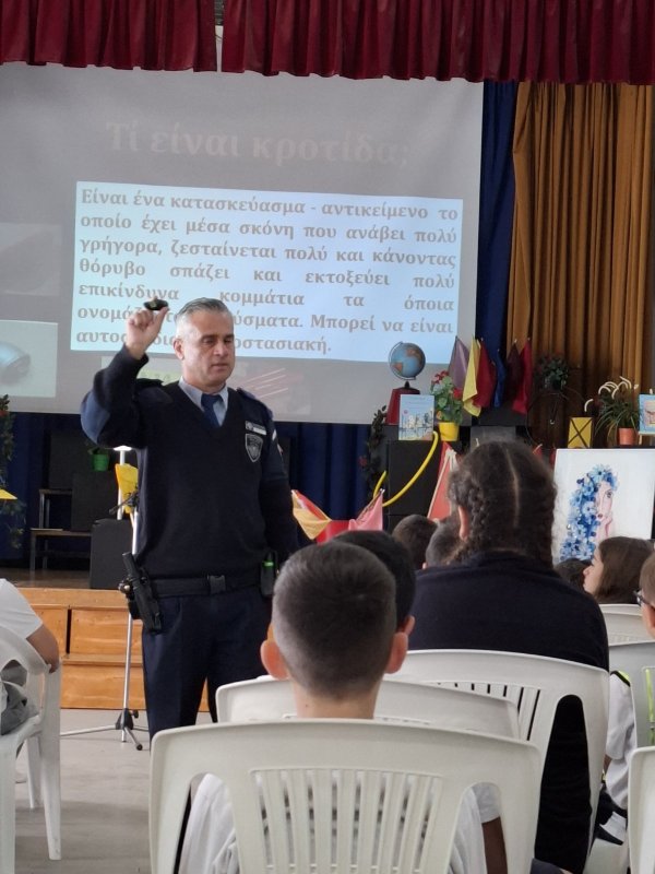 3/4/25 Ενημέρωση μαθητων Δ'-Στ' τάξης για τις κροτίδες, από τον αστυνομικό της γειτονιάς.